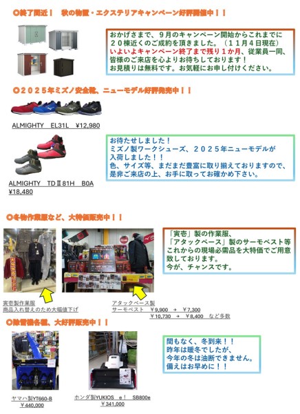 秋の物置・エクステリアキャンペーン大好評開催中 ほか