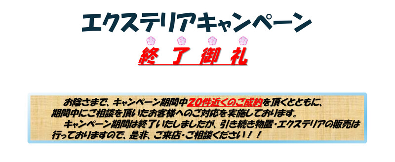 秋のエクステリアキャンペーン終了のおしらせ