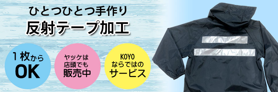 当店でご購入の作業服・ツナギ・ヤッケ・ジャンパー等に反射テープ付け加工を行っています。