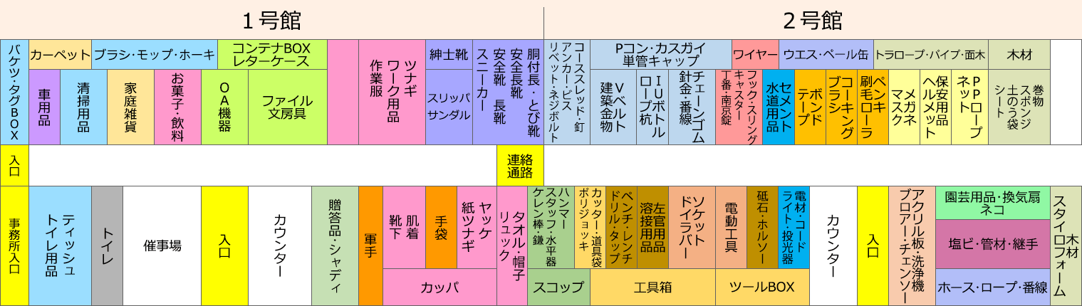 電材、保安・安全用品、各種工具、大工道具、電動工具、建築金物、塗料・接着剤、シート・化成品、 エクステリア製品、インテリア製品まで、現場に直結する商品を中心に取り揃えています。